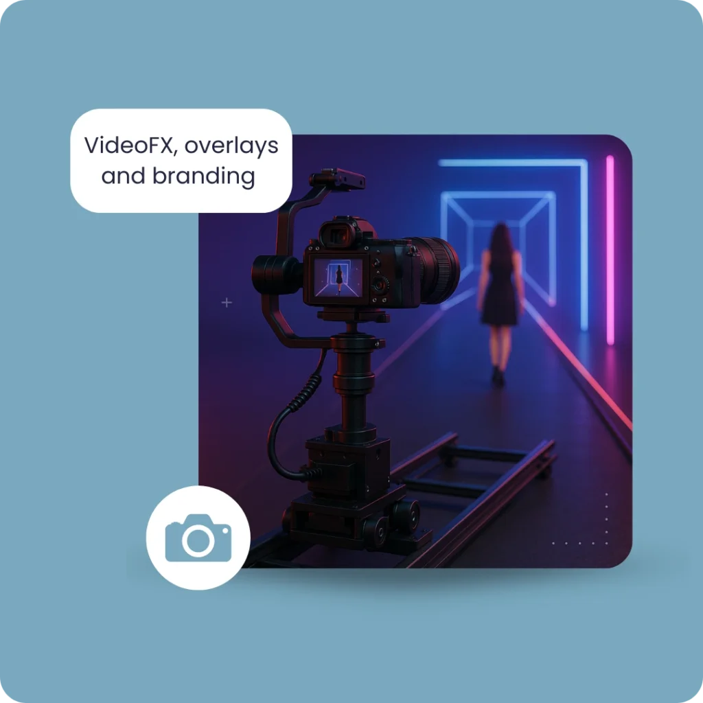 • Branded virtual backdrops and animated VideoFX