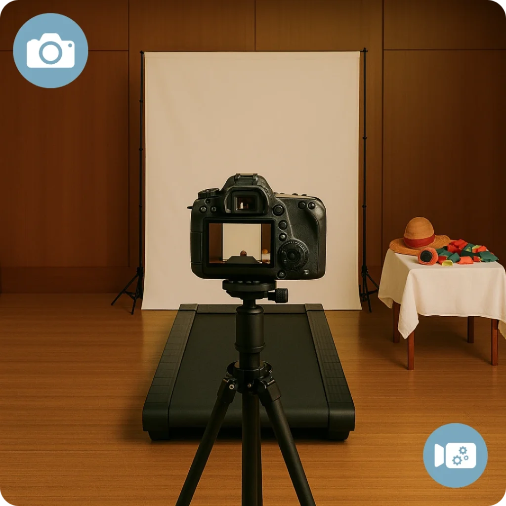 • Two options: green-screen treadmill or rail-tracked video path