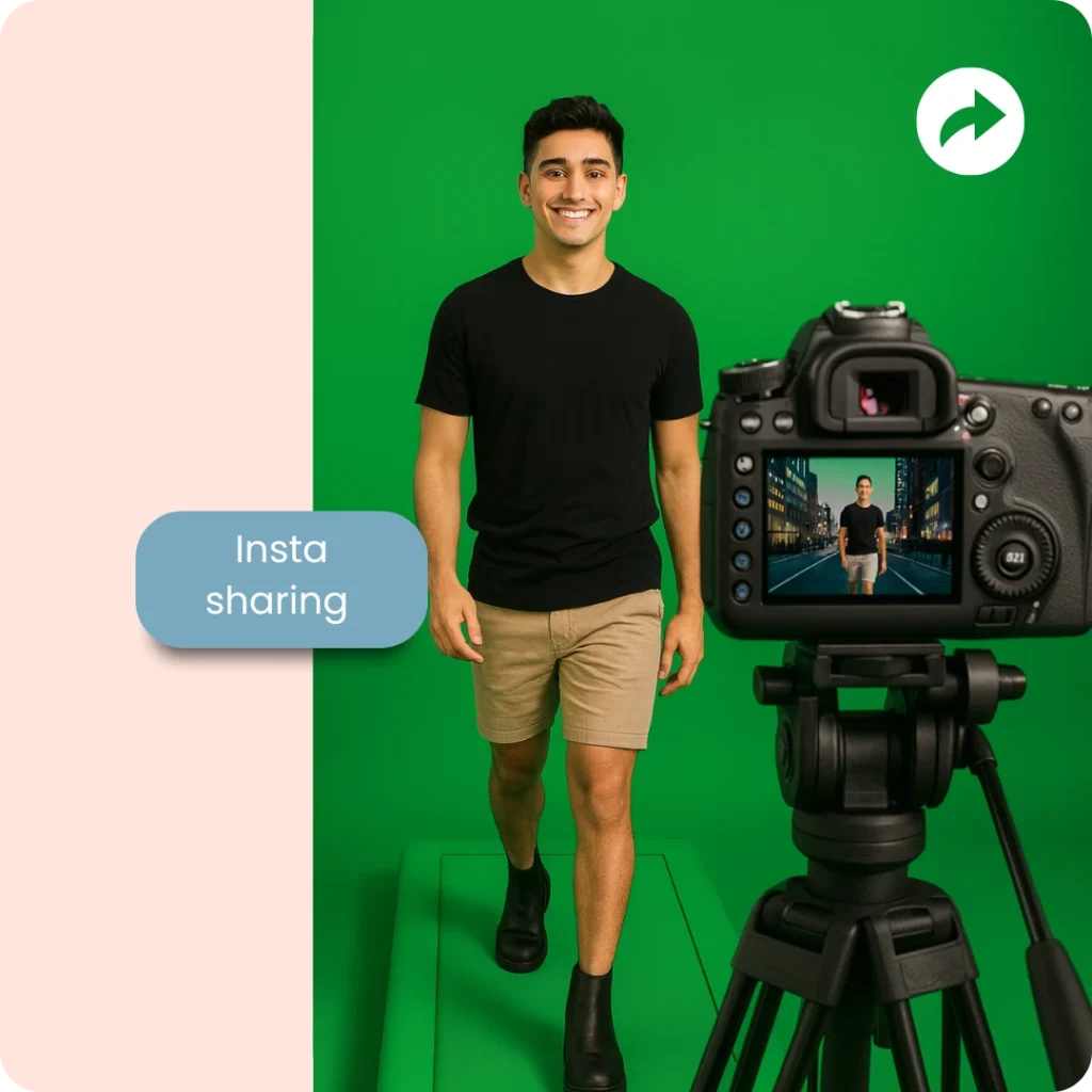 Step onto a green treadmill with a green-screen backdrop and strike a pose while walking or jogging. The video booth then replaces the background with branded scenes—red carpets, cityscapes, or branded animation—to transform guests into virtual runway models. This “green-screen treadmill” concept is becoming a top-tier experiential favorite