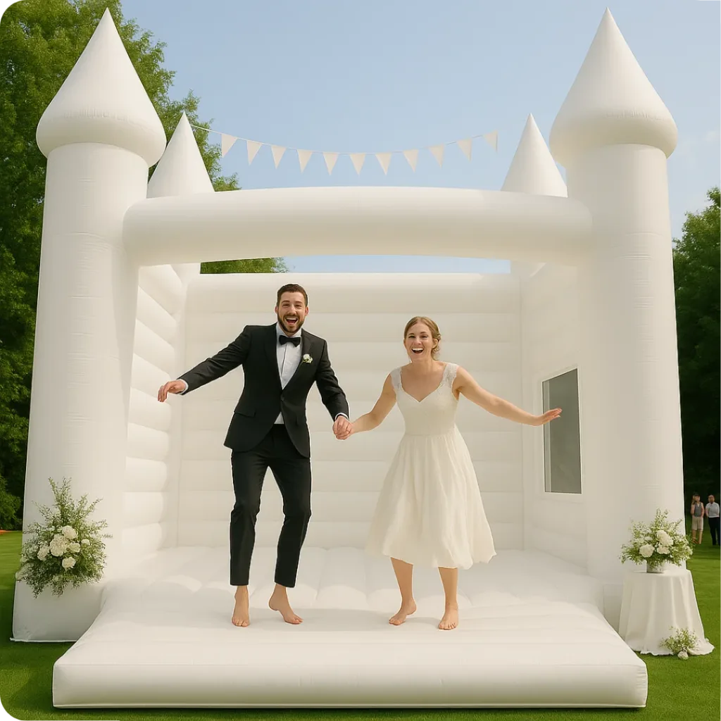 Our modern, all-white inflatable bounce houses add a stylish twist to any event.