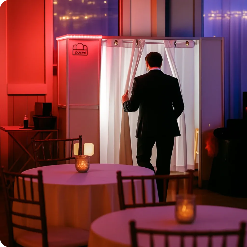 Our Enclosure Photo Booth rental in Chattanooga creates a fully enclosed, private photo booth experience.