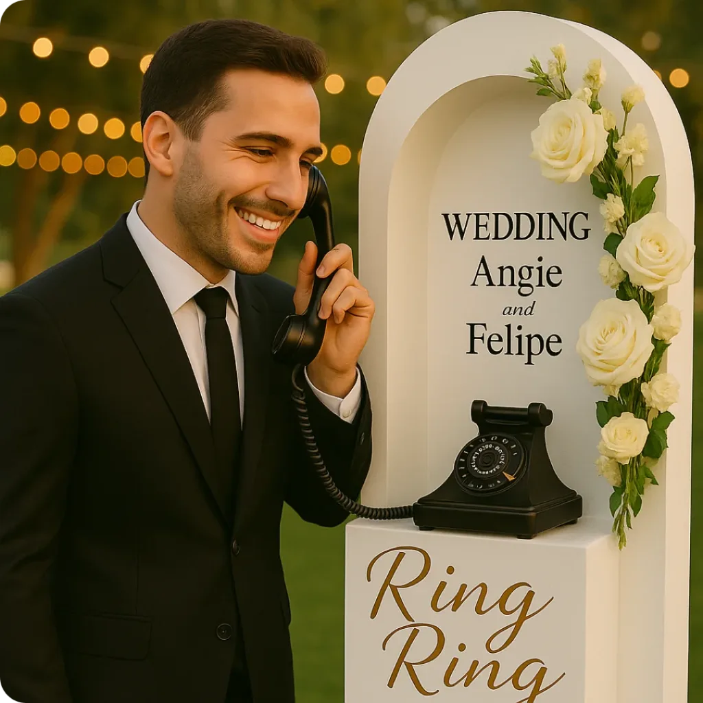 The Telephone Message Booth replaces the traditional written guestbook with something far more personal — real voices and real emotions. Guests simply pick up the phone, listen to a short greeting, and leave their message. From funny stories to heartfelt well-wishes, these audio recordings capture the true spirit of your Chattanooga wedding event rental.