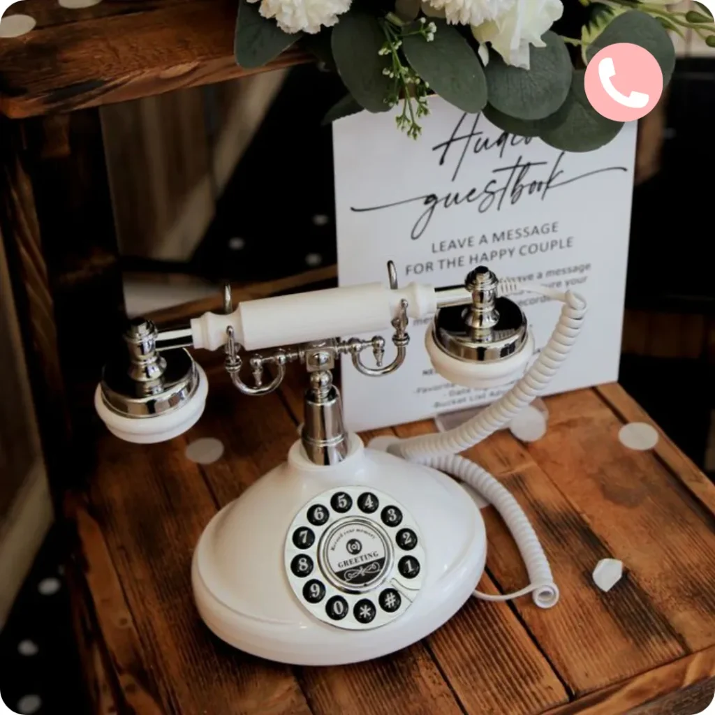 The Telephone Message Booth replaces the traditional written guestbook with something far more personal — real voices and real emotions. Guests simply pick up the phone, listen to a short greeting, and leave their message. From funny stories to heartfelt well-wishes, these audio recordings capture the true spirit of your Chattanooga wedding event rental.