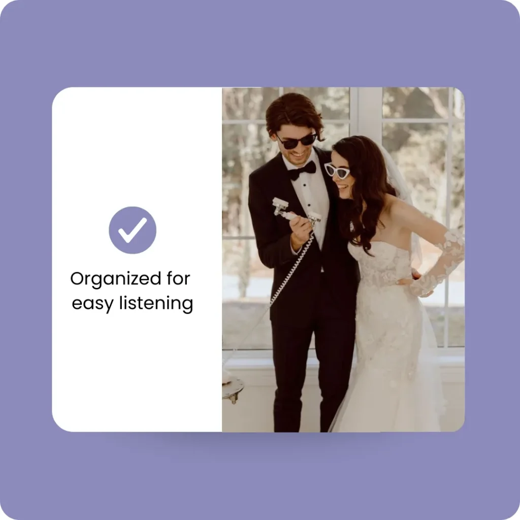 Every message is recorded with high-quality audio using professional-grade equipment. Even in busy receptions with background noise, we ensure clean, clear recordings. After your event, we deliver all recordings digitally, organized for easy listening. Couples also have the option to receive a USB drive or a custom keepsake album.