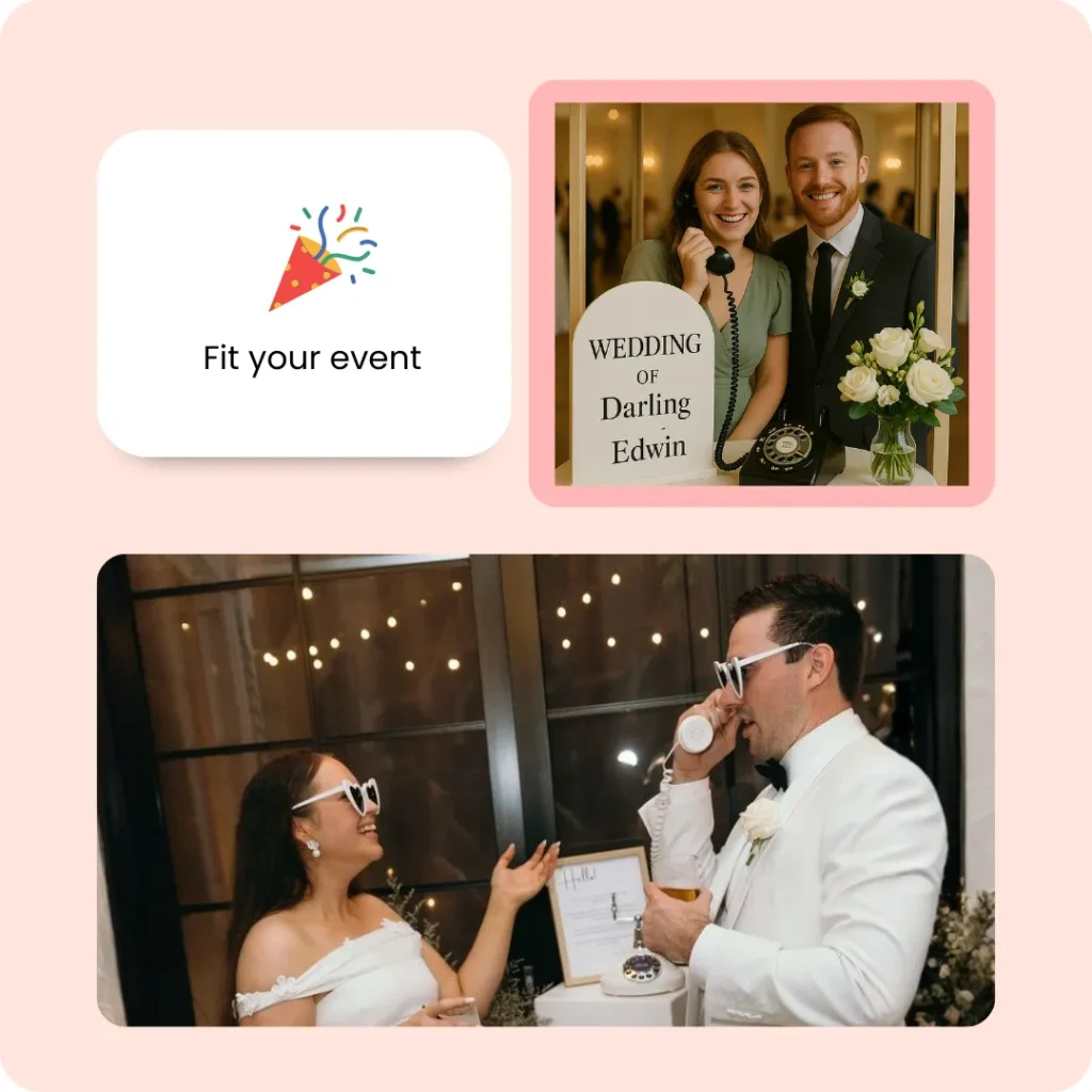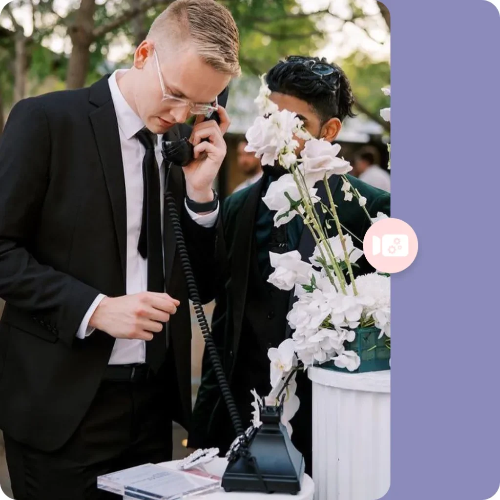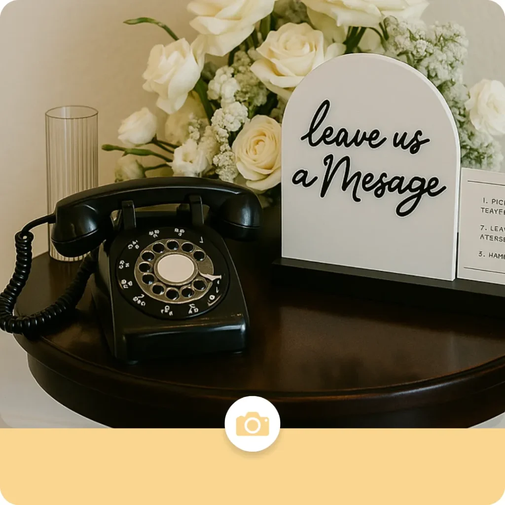 The booth is easy for everyone to use — pick up, record, and hang up. Clear instructions and signage are provided so every guest can participate without confusion. The simplicity encourages more guests to leave messages, resulting in a full collection of personal notes that you’ll treasure long after your big day.