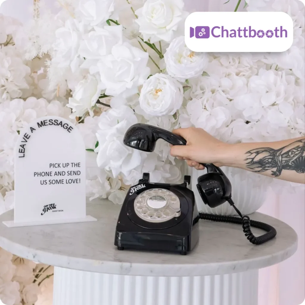 Our Telephone Message Booth rental in Chattanooga brings a unique and personal touch to your event. Guests pick up a vintage phone and leave personal voicemail messages filled with love, laughter, and memories. After the event, the bride and groom receive a full audio collection of heartfelt messages, creating a timeless keepsake they can enjoy for years to come.
