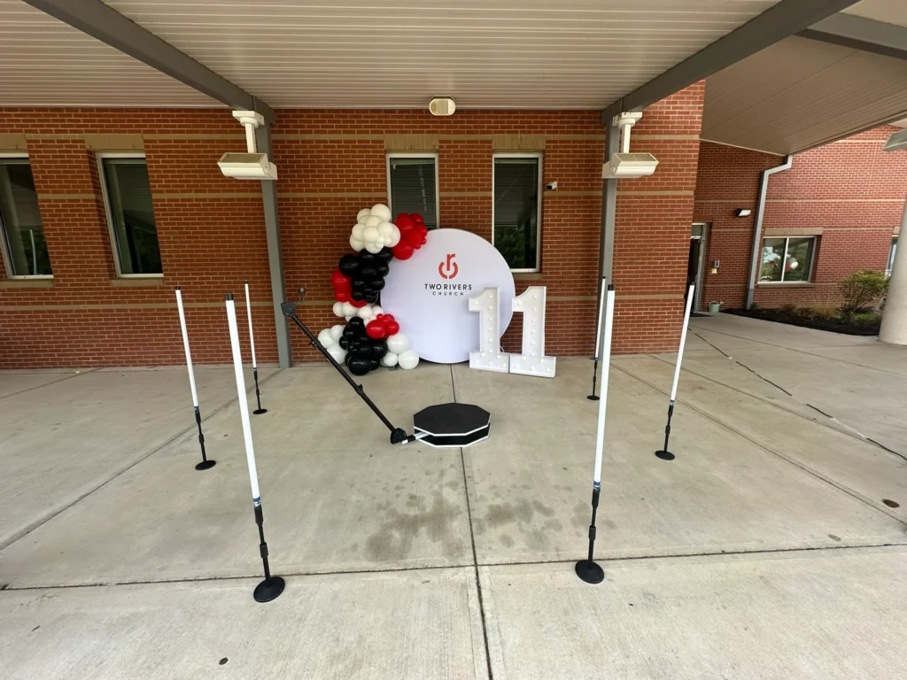 To celebrate Two Rivers Church’s 11th anniversary, we helped produce a vibrant, community-focused event that brought families and members together for a day of fun, connection, and celebration. We provided a full event experience, including a 360 Photo Booth with a custom backdrop featuring the church’s logo, framed by large marquee “11” numbers and balloons in the church’s brand colors. Inflatables were set up for all age groups, creating a fun environment for kids and adults alike. A picnic area with tables was paired with a pizza station and drinks to keep everyone refreshed. To complete the experience, we installed a PA system that played music throughout the event, adding energy and atmosphere. Every detail was crafted to reflect the spirit of Two Rivers—joyful, welcoming, and centered on community.