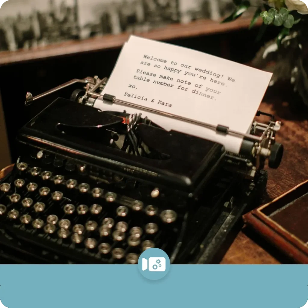 We deliver a beautifully restored vintage typewriter to your event, ready for guests to use throughout the night. Older guests are instantly transported to earlier days — often excited to type again for the first time in decades. Younger guests? They’re intrigued and entertained from the moment they try typing their first word.